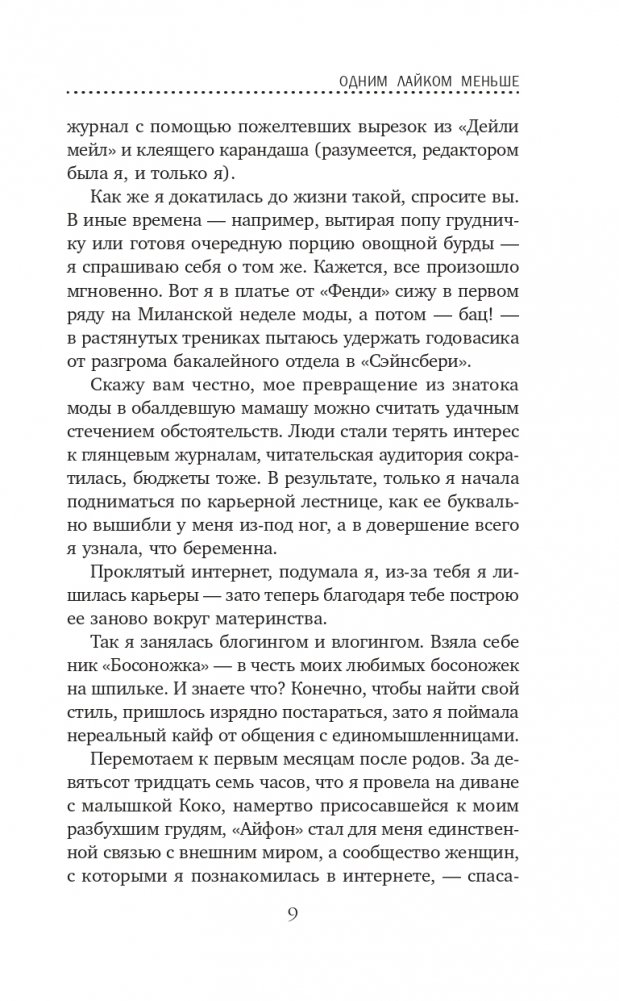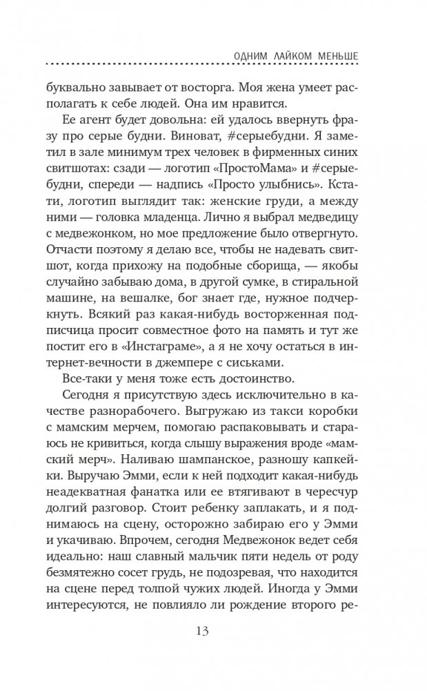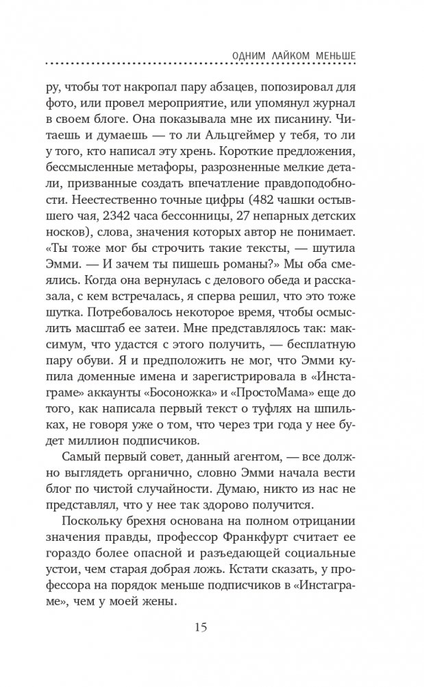 Её любят миллионы мамочек. И ненавидит одна… Ты — звезда Инстаграма. Твоим словам внимают миллионы фолловеров. Тебе завидуют, тобой восхищаются, тебе подражают. У тебя есть все и даже больше. Но ты не заслужила этого. Я знаю правду. Ты превратила свою семейную жизнь в бесконечное реалити-шоу и готова идти по головам ради лайков и подписчиков. Твои маленькие дети, твой любящий, красивый муж, твой уютный дом и семейный быт — всё бесстыдно выставлено напоказ. Так что я знаю про тебя всё. И однажды я приду за тобой и твоей семьей… В этом захватывающем психологическом триллере Эллери Ллойд исследует современную культуру социальных сетей: нашу отчаянную потребность в популярности и риски, на которые мы готовы пойти, чтобы понравиться незнакомцам в интернете - но при этом забываем об опасностях реальной жизни за пределами экрана… «Прочла за один присест... Захватывающе и оригинально. Браво, Эллери Ллойд!» — Клэр Макинтош «Социальные сети еще никогда не были такими мрачными и привлекательными. Волнующий взгляд на мир инфлюенсеров и то, как он влияет на их семьи». — Саманта Даунинг «Умный, оригинальный и увлекательный триллер с захватывающим набором реалистичных персонажей». — Дженни Кинтана «Идеальный современный триллер. Притягательная и одновременно отталкивающая главная героиня, изящное повествование от двух лиц, основанное на сценарии, который легко вообразить... Совершенно невозможно оторваться. Мне казалось, что каждая глава заканчивается на крутом моменте, и мое сердце уходило в пятки. Мне понравилось». — Кэролайн Коркоран «Не читайте эту книгу в поезде — я пропустила свою остановку... С одной стороны, это увлекательный и остроумный page-turner. С другой стороны — книга, которая заставит вас по-другому взглянуть на жизнь в двадцать первом веке». — Холли Уотт Захватывающий, заставляющий задуматься, продуманный до мельчайших деталей роман. Я подозревала всех по очереди... Поистине блестящее и освежающе оригинальное произведение». — Карен Гамильтон «Закрученный и мрачный, как все большие триллеры». — Эбби Гривз