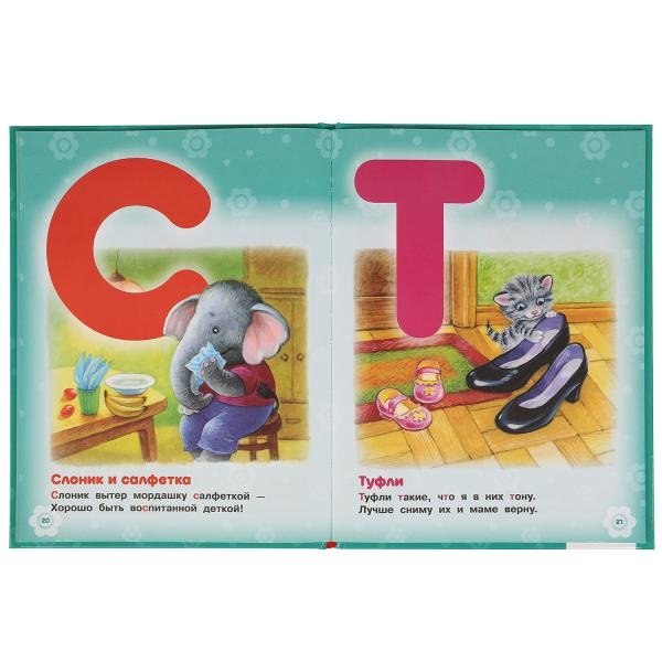 Ребёнку будет весело и интересно учить буквы в стихотворной форме, а яркие картинки с изображением милых животных сделают процесс обучения ещё более увлекательным. Благодаря удобному формату книгу можно взять с собой в дорогу.