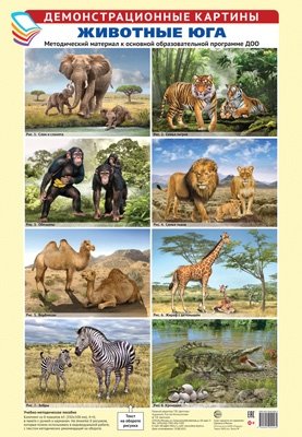 Издательство «ТЦ Сфера» представляет комплект «Животные Юга», состоящий из 8 цветных демонстрационных картин формата А3 и этикетки, на обороте которой приводятся беседы, занятия и упражнения с детьми по каждой картине.