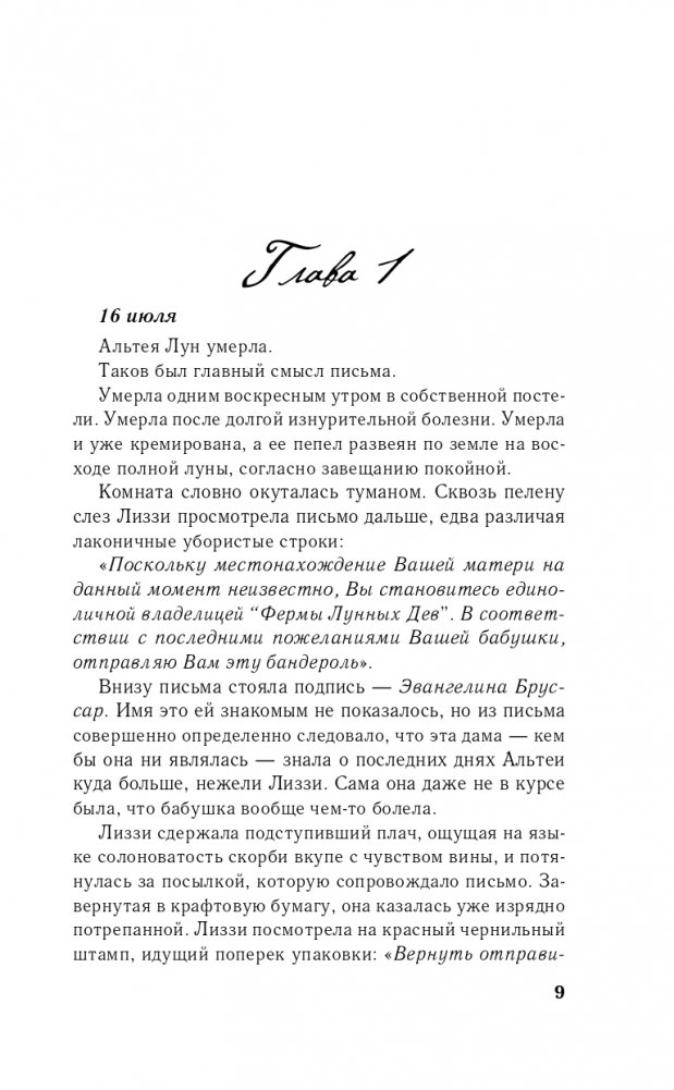 Жительница Нью-Йорка Лиззи Лун получает бандероль со странной именной книгой для записей, а также сообщение, что ее бабушка, известная в городке Сейлем-Крик травница и целительница Альтея Лун, умерла, и прах ее уже развели по ветру. Поскольку мать Лиззи исчезла в неизвестном направлении еще восемь лет назад, Лиззи становится единоличной владелицей родового имения с плантациями лаванды и целебных трав. Лиззи, всегда стремившаяся оторваться от семейного наследия и некогда уехавшая из города, чтобы построить новую жизнь, вынуждена вернуться в места детства и впервые взять на себя ответственность.