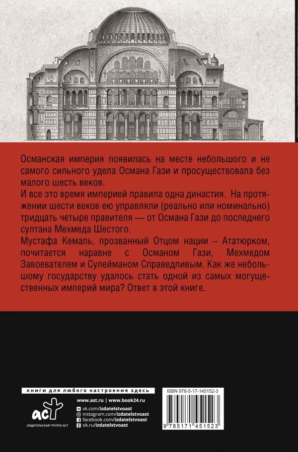 Османская империя появилась на месте небольшого и не самого сильного удела Османа Гази и просуществовала без малого шесть веков. И все это время империей правила одна династия. На протяжении шести веков им управляли (реально или номинально) тридцать четыре правителя — от Османа Гази до последнего султана Мехмеда Шестого. Мустафа Кемаль, прозванный Отцом нации – Ататюрком – почитается наравне с Османом Гази, Мехмедом Завоевателем и Сулейманом Справедливым. Как же небольшому государству удалось стать одной из самых могущественных империй мира?