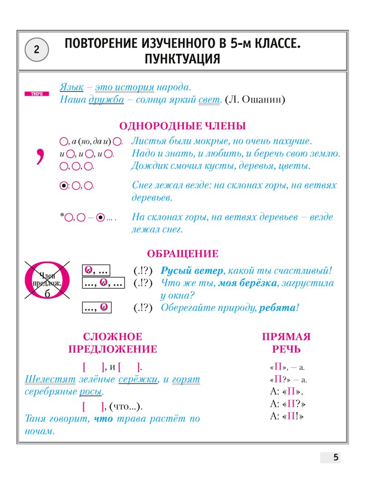 Издание составлено в соответствии с материалом учебного пособия по русскому языку для 6 класса. Основные правила представлены в виде схем и опорных конспектов, предложены задания для проверки знаний. Использование пособия поможет учащимся сконцентрировать внимание на наиболее трудных для запоминания местах и лучше усвоить материал.