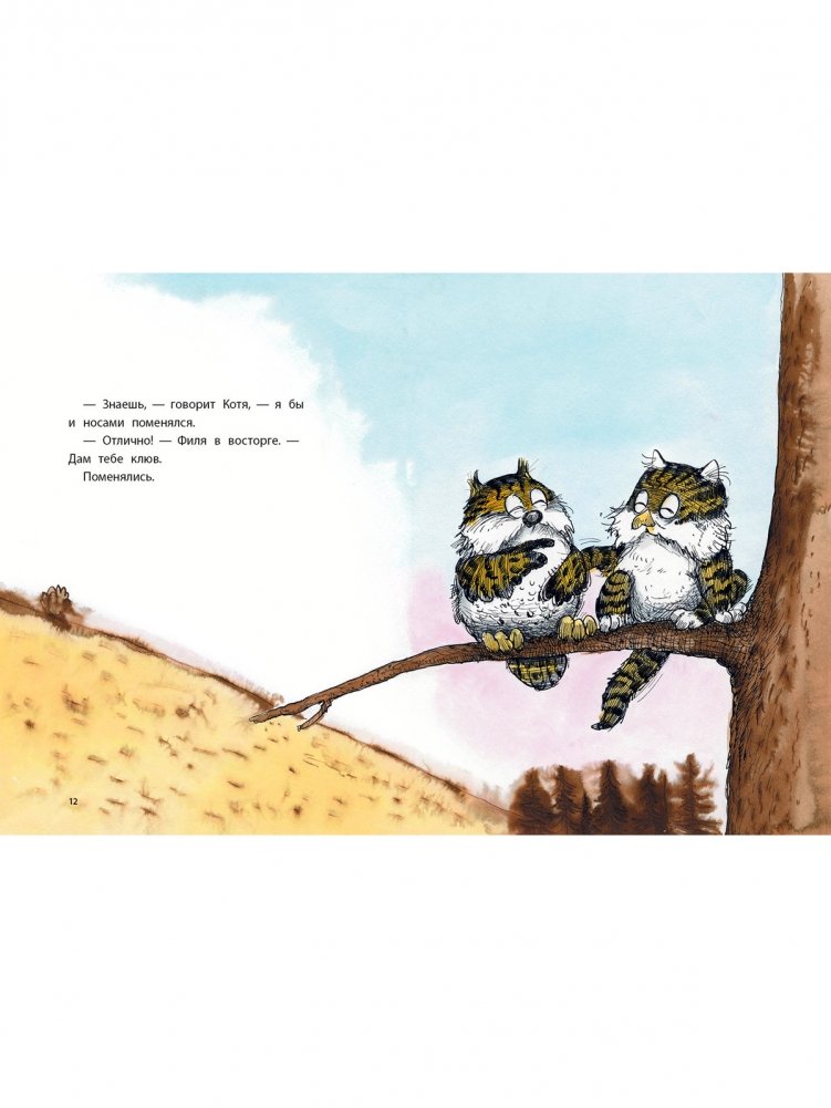 Маленькие филин Филя и котёнок Котя заскучали. Чем бы им заняться таким интересным? Меняться! Они поменялись сначала глазами, потом носами, потом лапами. Что же из этого получилось? Весёлая и поучительная история замечательного эстонского сказочника и художника Эдгара Вальтера расскажет о том, что заранее подумать бывает очень полезно.