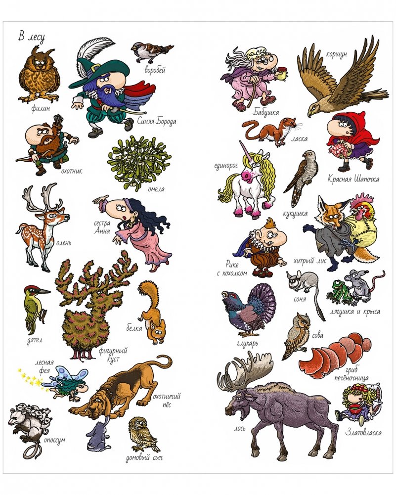 Кто обитает в лесу? Какие персонажи встретятся в пути? Рассматривайте предметы, нарисованные на клапанах, ищите их на разворачивающихся панорамах и пополняйте словарный запас.