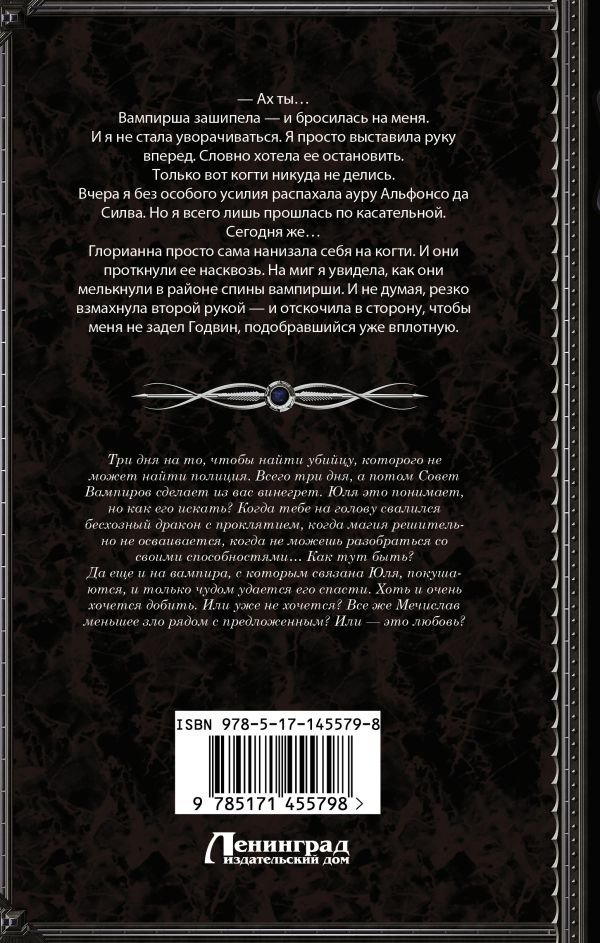 Три дня на то, чтобы найти убийцу, которого не может найти полиция. Всего три дня, а потом Совет Вампиров сделает из вас винегрет. Юля это понимает, но как его искать? Когда тебе на голову свалился бесхозный дракон с проклятием, когда магия решительно не осваивается, когда не можешь разобраться со своими способностями… Как тут быть?