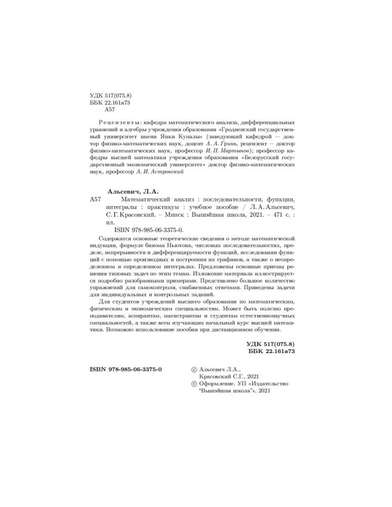 Для студентов учреждений высшего образования по математическим, физическим и экономическим специальностям. Может быть полезно преподавателям, аспирантам, магистрантам и студентам естественнонаучных специальностей, а также всем изучающим начальный курс высшей математики. Возможно использование пособия при дистанционном обучении.