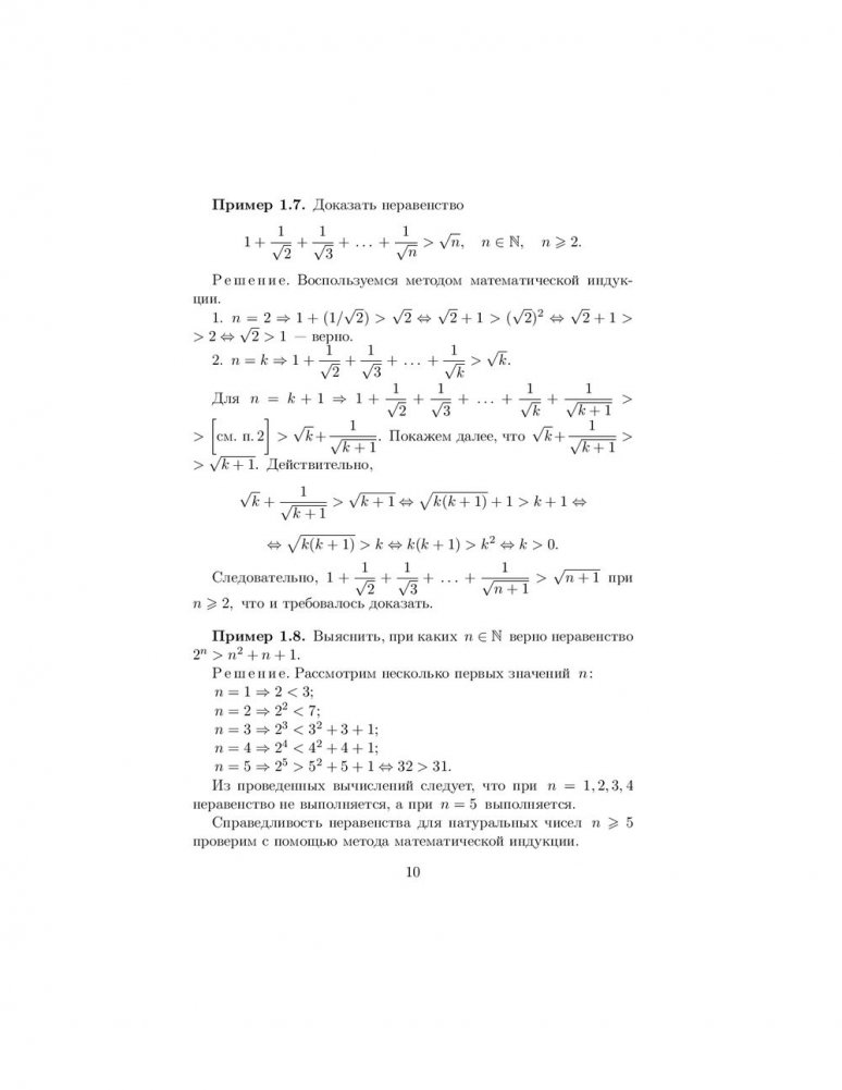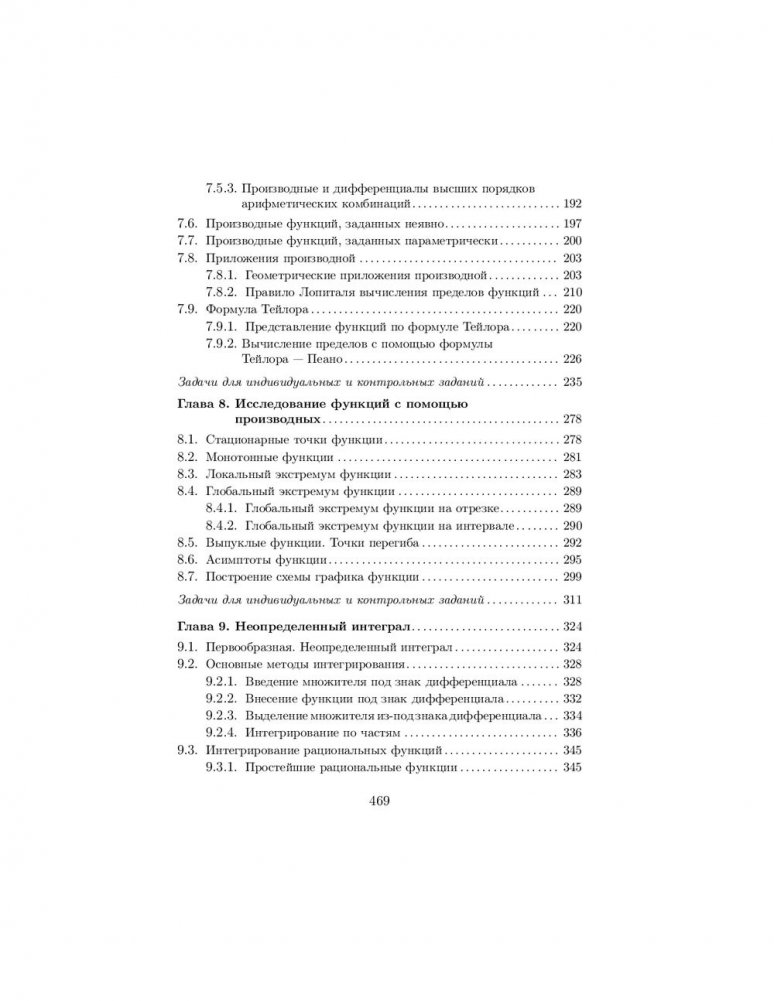 Содержатся основные теоретические сведения о методе математической индукции, формуле бинома Ньютона, числовых последовательностях, пределе, непрерывности и дифференцируемости функций, исследовании функций с помощью производных и построении их графиков, а также о неопределенном и определенном интегралах. Предложены основные приемы решения типовых задач по этим темам. Изложение материала иллюстрируется подробно разобранными примерами. Представлено большое количество упражнений для самоконтроля, снабженных ответами. Приведены задачи для индивидуальных и контрольных заданий.