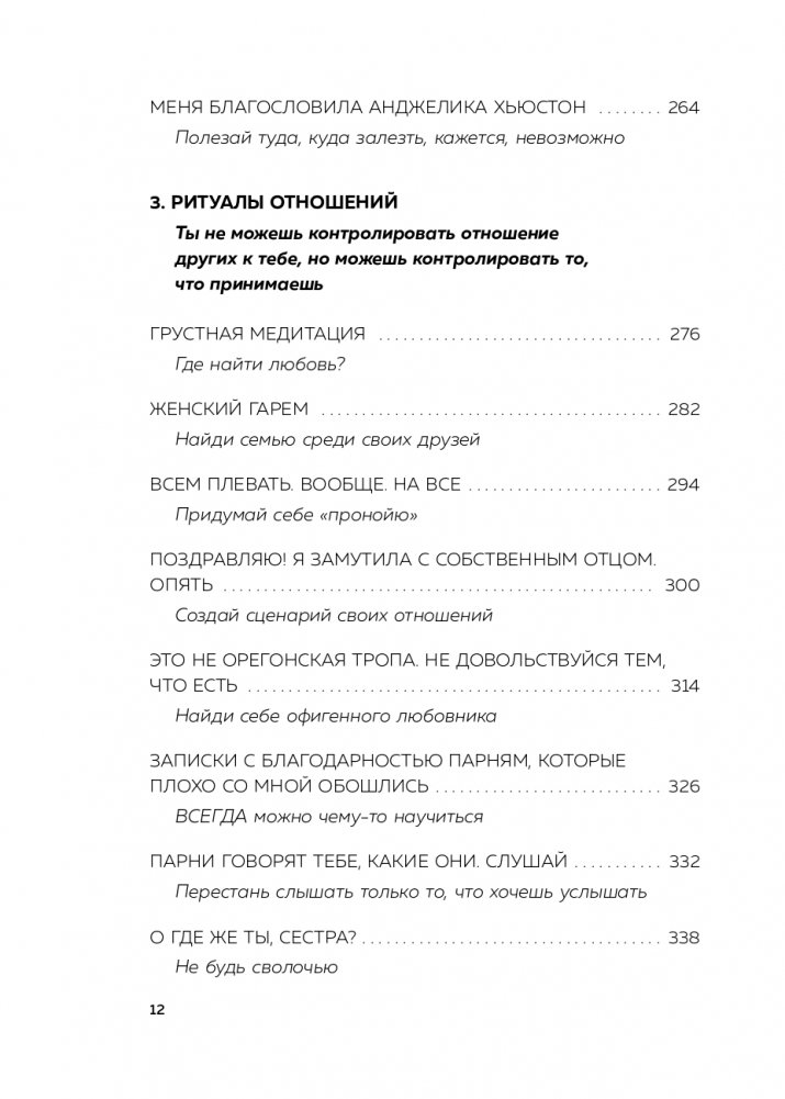 Взрослея, мы не становимся черствыми, просто мы учимся самоисцеляться. Эта книга для тех, чья душа покрыта корочкой льда. Для тех, кто прячется от настоящего себя в бессмысленной суете и поверхностных отношениях. Для тех, кто живет с закрытыми глазами, одинаково опасаясь смотреть как в будущее, так и в прошлое. Эта книга — дорожка из хлебных крошек, которые ведут сквозь темный лес к теплу и свету. Написанная Тарой Шустер, талантливым сценаристом и телеведущей, она учит создавать внешние опоры из маленьких целительных ритуалов, вроде спонтанной покупки любимых цветов. Учит принимать свое тело, любить себя, держать плечи расправленными, а сердце — открытым. Очень практичная и обволакивающе теплая, эта книга помогает преодолеть душевные травмы и начать жить в полную силу.