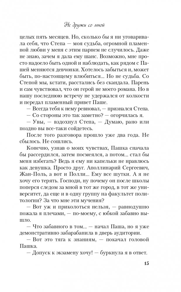 Существует ли дружба между мужчиной и женщиной? Полина Ковалева знает, что это невозможно. Она давно влюблена в своего лучшего друга, но Паша Долгих не догадывается о ее чувствах. Его угораздило влюбиться в Ульяну Шацкую, первую красавицу и отличницу универа. Чтобы покорить сердце Ульяны, он просит подругу ему помочь. Но Полина решает насолить сопернице и показать парню своей мечты, кто ему нужен на самом деле. Вот только она не подозревает, чем обернется ее рискованный план.