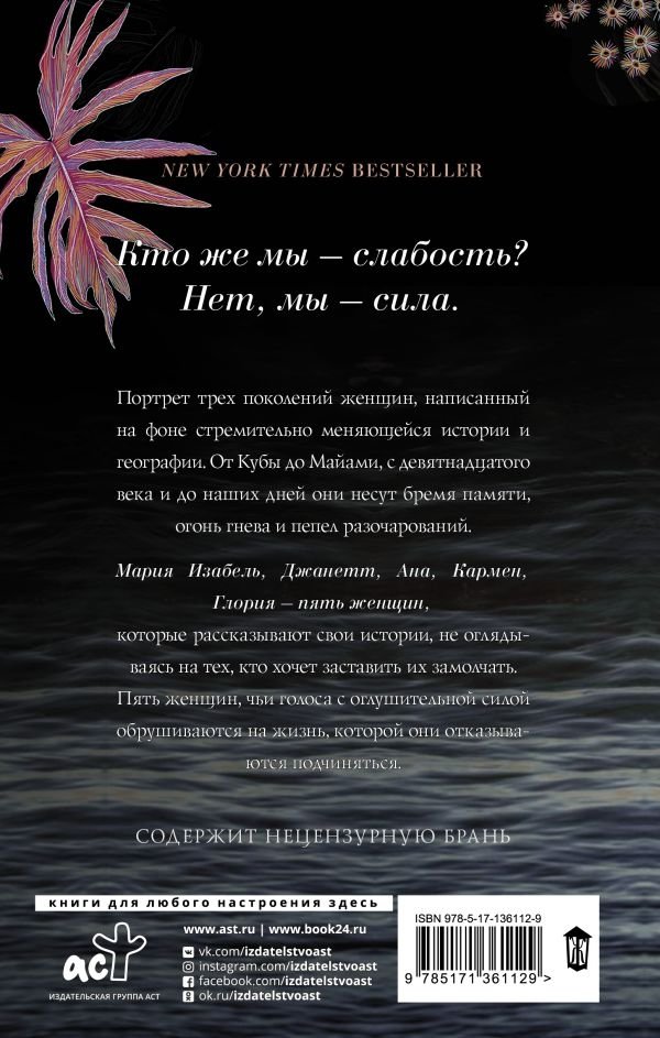 Портрет трех поколений женщин, написанный на фоне стремительно меняющейся истории и географии. От Кубы до Майами, с девятнадцатого века и до наших дней они несут бремя памяти, огонь гнева и пепел разочарований.
