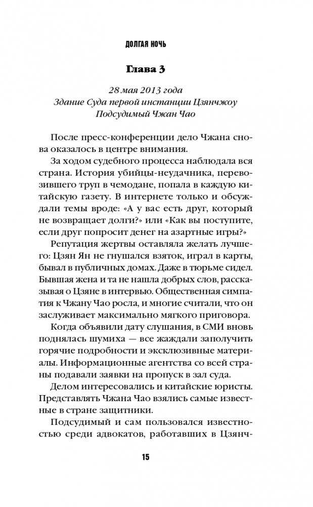 Цзыцзинь Чэнь входит в тройку самых крутых авторов триллеров в Китае. Книга не только завоевала титул национального бестселлера, но и легла в основу сериала, ставшего феноменом 2020 года. Китай, Цзянчжоу, 2013 год. На станции метро арестовывают мужчину. В его руке – огромный чемодан, в котором, по утверждениям задержанного, находится бомба. Но саперы обнаруживают внутри… обнаженный труп. Это происшествие взрывает интернет, приковывая колоссальное внимание к ходу расследования. На первый взгляд ситуация более чем прозрачная, а обвиняемый признал вину целиком и полностью, добровольно согласившись на сотрудничество со следствием. Но на суде он вдруг отказывается от показаний, предоставив железное алиби… Книга позволяет соприкоснуться с темной стороной общества, блестяще показанной автором. Прочитав ее, вы испытаете не только бурный восторг, но и печаль от человеческого несовершенства. Информационное агентство Синьхуа Цзыцзинь Чэнь занимает верхние строчки в топе. Red Star