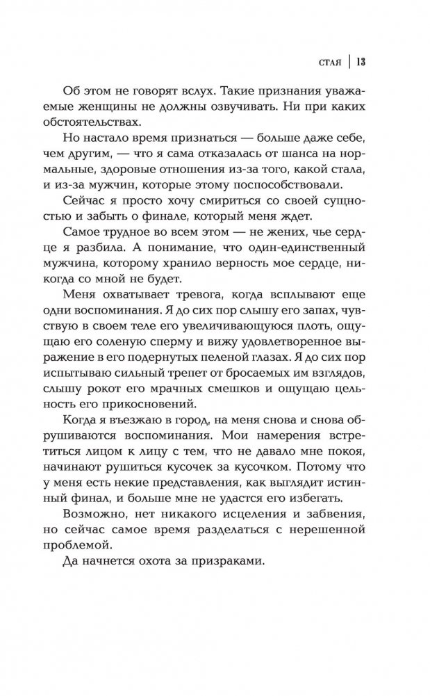 Мне это было неведомо, когда я проживала свою историю, свою исковерканную сказку, поскольку была юной и наивной. Я поддалась искушению и вскормила этого пульсирующего монстра, который с каждым ударом, с каждым толчком, с каждым вздохом алчно желал больше.