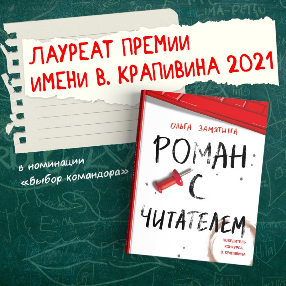 1. Ольга Замятина со своим произведением "Роман с читателем" стала лауреатом премии имени В. Крапивина 2021 в номинации "Выбор командора"