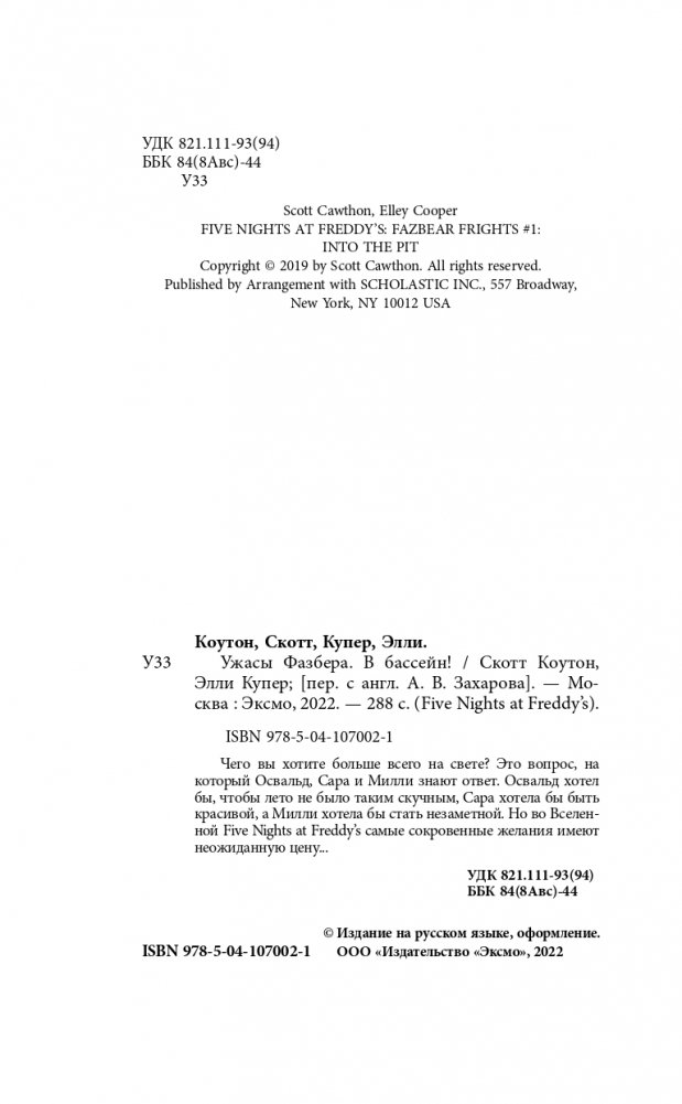 Чего вы хотите больше всего на свете? Это вопрос, на который Освальд, Сара и Милли знают ответ. Освальд хотел бы, чтобы лето не было таким скучным, Сара хотела бы быть красивой, а Милли хотела бы стать незаметной. Но во Вселенной Five Nights at Freddy's самые сокровенные желания имеют неожиданную цену...