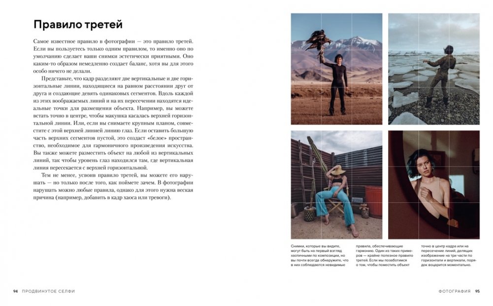 «За относительно недолгий срок я поняла, как снимать себя с помощью одной камеры и пары простых инструментов так, чтобы снимки были достойны журнала высокой моды. (Попрошу заметить — у меня был ровно ноль опыта в качестве модели, да и опыт по ту сторону объектива также был весьма невелик.) В итоге я назвала этот метод фотографирования “Продвинутым селфи”... Моя настойчивость привела к тому, что миллионы людей посмотрели мои тематические видео, меня опубликовали в СМИ по всему миру, а теперь вы читаете эту книгу, где я передаю по цепочке мои художественные навыки. Нужно всего лишь вникнуть в основы, приобрести немного уверенности — и для вас откроется дорога исследований и бесконечного творчества». (Сорелл Амор)