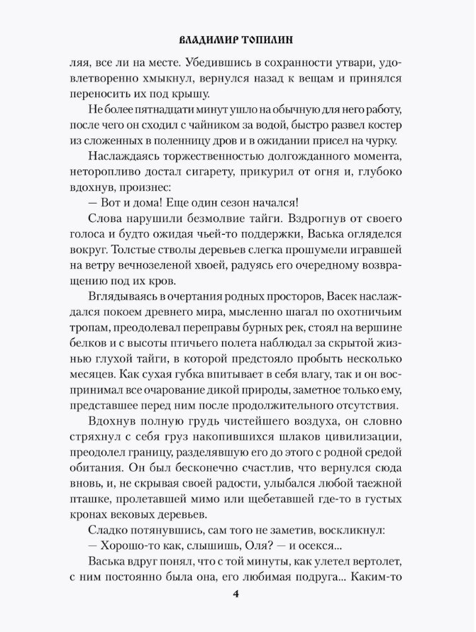 Повесть «Когда цветут эдельвейсы» — реальная история профессионального охотника и его избранницы, городской девушки Ольги. Тайга принимает ее далеко не с распростертыми объятиями. Ей приходится постигать премудрости таежной жизни, пройти школу выживания и даже вступить в схватку с медведем.