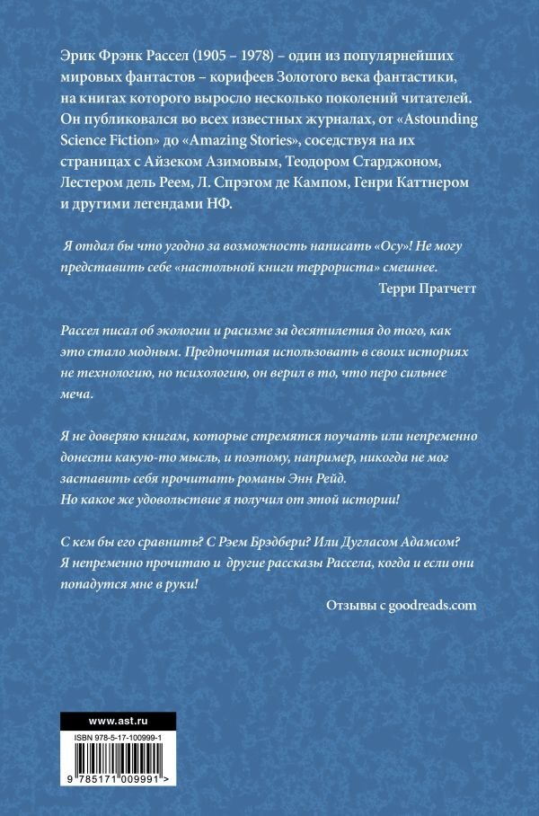 Эрик Фрэнк Рассел (1905 – 1978) – один из популярнейших мировых фантастов – корифеев Золотого века фантастики, на книгах которого выросло несколько поколений читателей. Он публиковался во всех известных журналах, от "Astounding Science Fiction" до "Amazing Stories", соседствуя на их страницах с Айзеком Азимовым, Теодором Старджоном, Лестером дель Реем, Л. Спрэгом де Кампом, Генри Каттнером и другими легендами НФ.
