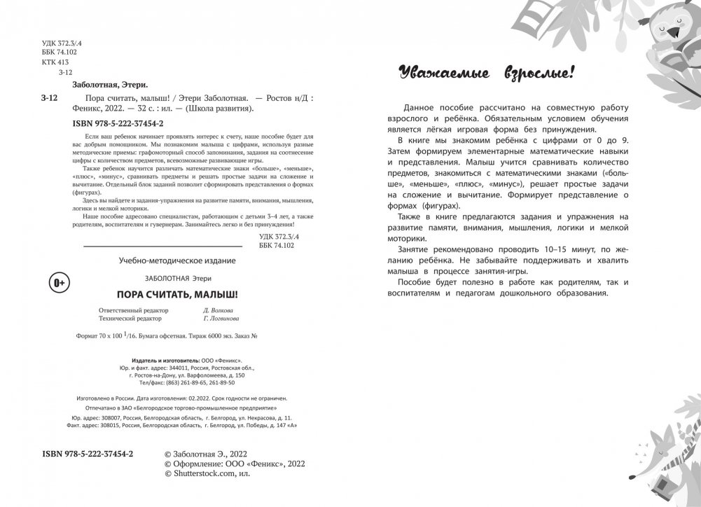 Если ваш ребенок начинает проявлять интерес к счету, наше пособие будет для вас добрым помощником. Мы познакомим малыша с цифрами, используя разные методические приемы: графомоторный способ запоминания, задания на соотнесение цифры с количеством предметов, всевозможные развивающие игры.