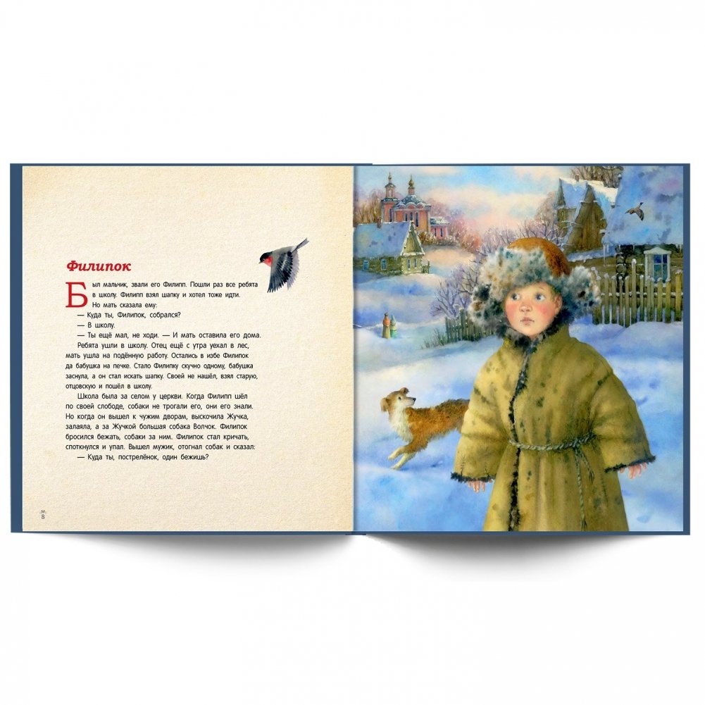 Рассказы, проверенные временем и великолепные иллюстрации в роскошно оформленном подарочном издании: твёрдый переплёт с особым тиснением, высококачественная мелованная бумага, крупный шрифт - совершенное сочетание формы и содержания! Представьте, как здорово читать любимую с детства книгу своему ребёнку! Разглядывать яркие картинки, специально нарисованные к каждой истории, следить за приключениями главных героев и обсуждать прочитанное. Когда-то вы сами так же знакомились с по-настоящему хорошей литературой, читая произведения классиков. С этой книгой вы снова окунётесь в добрую, немного наивную, но чудесную атмосферу лучших детских рассказов, проверенных временем. - "Филипок" Льва Толстого - "Цветик-семицветик" Валентина Катаева - "Девочка Снегурочка" Владимира Даля - "Сказка о потерянном времени" Евгения Шварца и многие другие. Рассказы научат ребёнка дружить, быть щедрым и заботливым, справляться со своими страхами и не бояться трудностей.