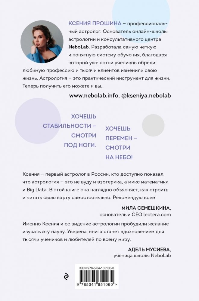 Дебютная книга Ксении Прошиной, профессионального астролога, создательницы консультативно-обучающего центра NeboLab, блогера сети Instagram. Правильно построив свою натальную карту, человек погружается в новый мир самопознания и моделирования своей жизни. Ксения дает все необходимые инструменты для этого!