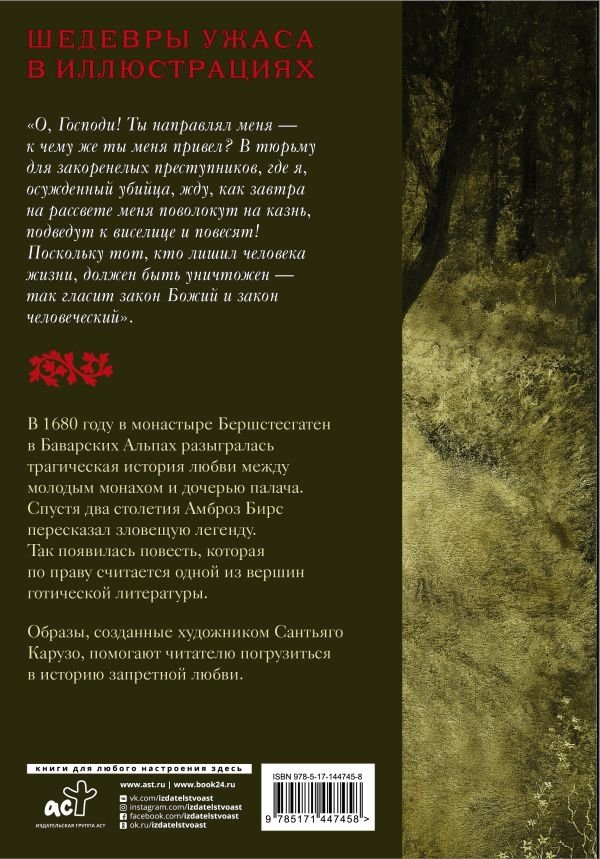 Эта книга — цветное издание Амброза Бирса с удивительными, порой мрачными, иногда странными иллюстрациями знаменитого аргентинского художника — Сантьяго Карузо. Она понравится не только поклонникам автора и хужожника, но и обычным читателям, увлеченным классической готикой. Эта книга также отлично подойдет в качестве подарка и неискушенному читателю. В ней стиль Бирса и иллюстрации Карузо удивительным образом переплетаются между собой, образуя новое, целостное произведение, которое раскрывается совсем по-иному.