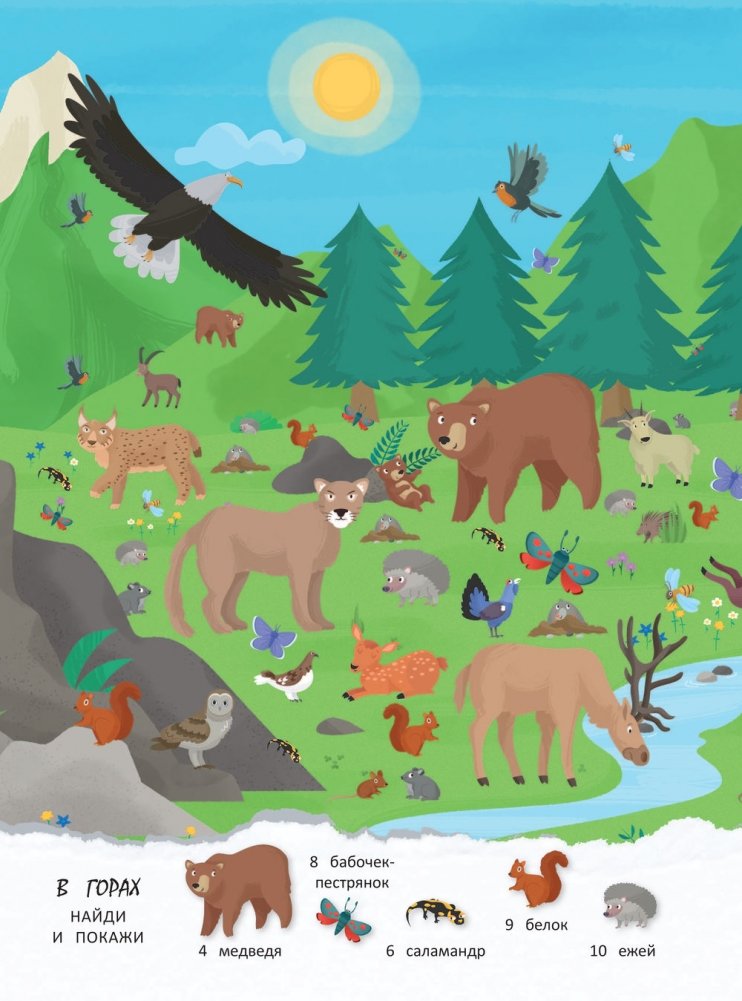 Когда-нибудь видели леопардовых мурен? Сможете отличить клыкача от бельдюги? Может, вы и рыбу-флейту никогда не видели? Все эти создания, а также многие другие, прячутся на страницах этой увлекательной находилки. Отправляйтесь в незабываемое приключение в разные уголки планеты и познакомьтесь с ее невероятными обитателями. Впереди только веселье и много, очень много находилок. В мире животных столько всего интересного — не хочется упустить ни одной детали. Воспользуйтесь уникальным шансом — исследуйте животный мир и отыщите всех, кого мы спрятали на красочных разворотах.