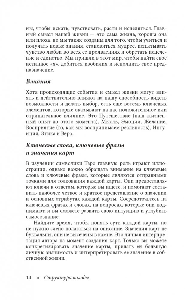 Эта колода сохраняет классическую структуру Таро в виде Старших и Младших арканов, но смело сочетает ее с новыми архетипами, символами и значениями, более подходящими нашему времени.