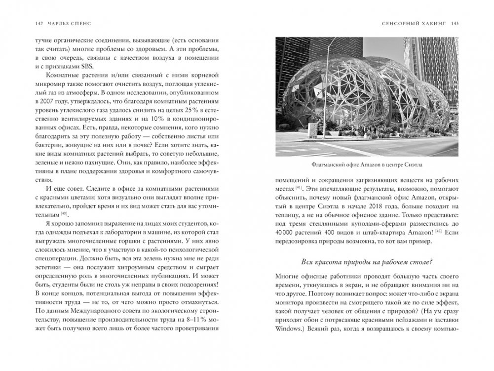 «Что я имею в виду, говоря о «сенсорном хакинге»? Освоить сенсорный хакинг — значит понимать, использовать и стимулировать чувства так, чтобы улучшить социальное, когнитивное и эмоциональное состояние человека. Если мы осознаем уникальные возможности каждого из чувств, если понимаем, как они взаимодействуют, что определяет их направление и наше поведение, то можем задействовать сенсорный опыт наиболее эффективно и таким образом повысить качество жизни тех, кто нам небезразличен, начиная с самих себя. Ваши цели могут быть разными: почувствовать себя спокойнее или энергичнее, сделать свою работу более продуктивной или менее напряженной, лучше высыпаться, лучше выглядеть, получать максимум пользы от тренировок… В любом случае наука о чувствах готова вам помочь» (Чарльз Спенс)