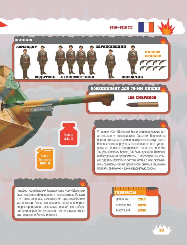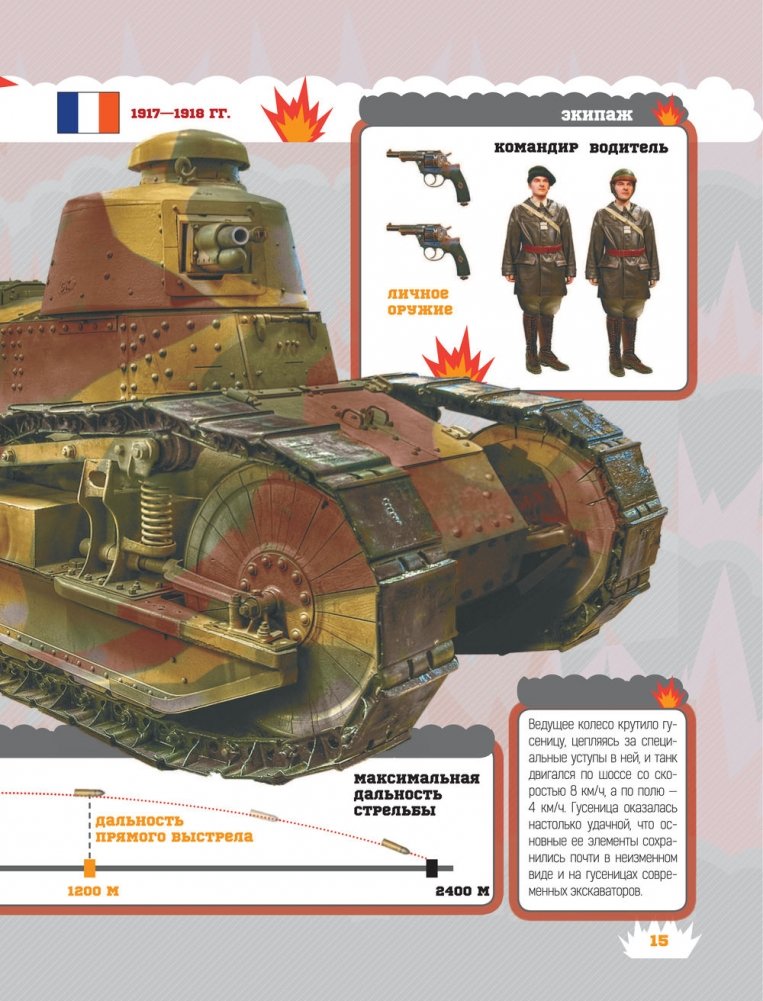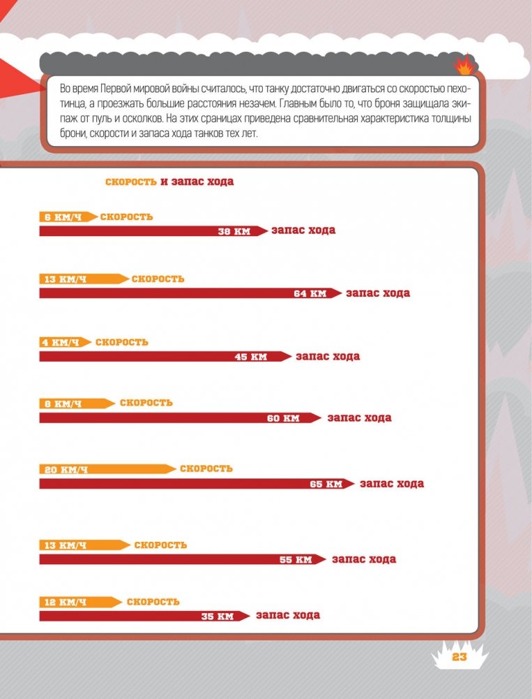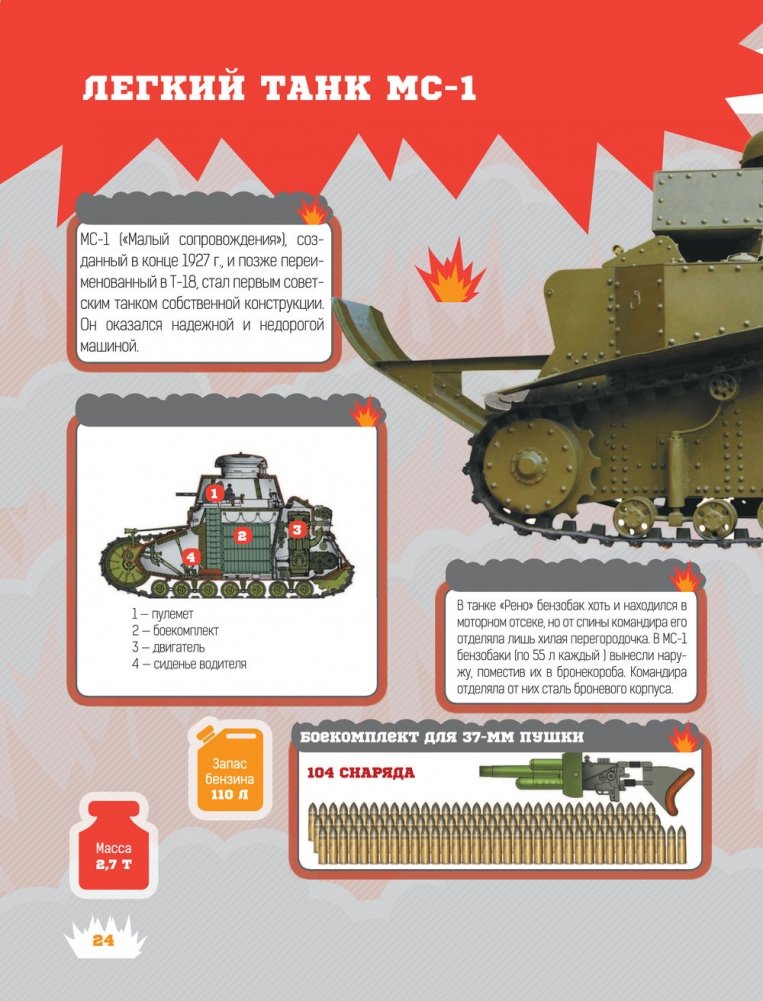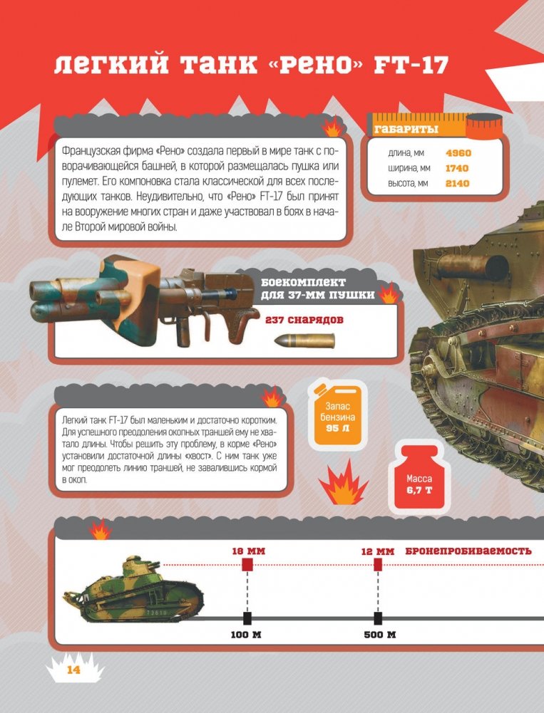 Как вы думаете, что мощнее: 125-миллиметровая пушка современного танка "Армата" или 76-миллиметровое орудие, которым оснащался во время Второй мировой войны знаменитый советский Т-34? Ответить на этот и множество других вопросов и разобраться в премудростях танковой техники вы сможете, изучив эту книгу. Здесь вы познакомитесь с тактико-техническими характеристиками и конструктивными особенностями известных танков мира, узнаете, чем эти боевые машины вооружены, сколько весят, на вооружении каких стран состоят. Факты и цифры помогут нам наглядно оценить сильные и слабые стороны каждого танка и понять, какую роль он сыграл в мировой военной истории. Прочитав эту книгу, вы станете настоящими военными экспертами!
