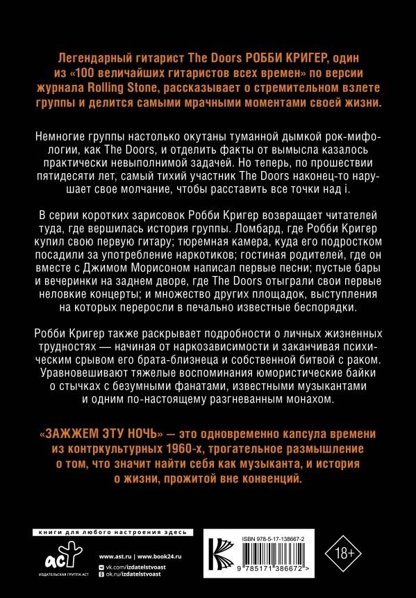 Робби Кригер также раскрывает подробности о личных жизненных трудностях — начиная от наркозависимости и заканчивая психическим срывом его брата‑близнеца и собственной битвой с раком. Уравновешивают тяжелые воспоминания юмористические байки о стычках с безумными фанатами, известными музыкантами и одним по‑настоящему разгневанным монахом.