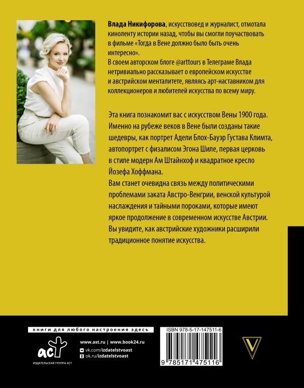 • Вы узнаете, как и почему были созданы такие шедевры мировой живописи, как "Портрет Адели Блох-Бауэр" и "Поцелуй" Густава Климта, "Автопортрет с физалисом" Эгона Шиле, первая церковь в стиле модерн Ам Штайнхоф, квадратное кресло Йозефа Хоффмана и многое-многое другое.