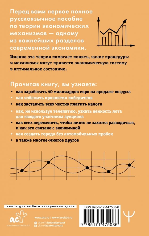 Перед вами первое полное русскоязычное пособие по теории экономических механизмов — одному из важнейших разделов современной экономики. Именно эта теория помогает понять, какие процедуры и механизмы могут привести экономическую систему в оптимальное состояние.