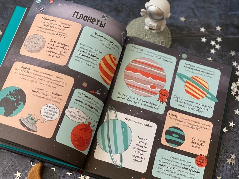 Благодаря поразительным фактам узнавать о звездах, планетах и освоении космоса станет куда проще и интереснее, чем просто читая учебник, а остроумные иллюстрации помогут лучше вникнуть в тему и надолго закрепить в памяти новые знания.