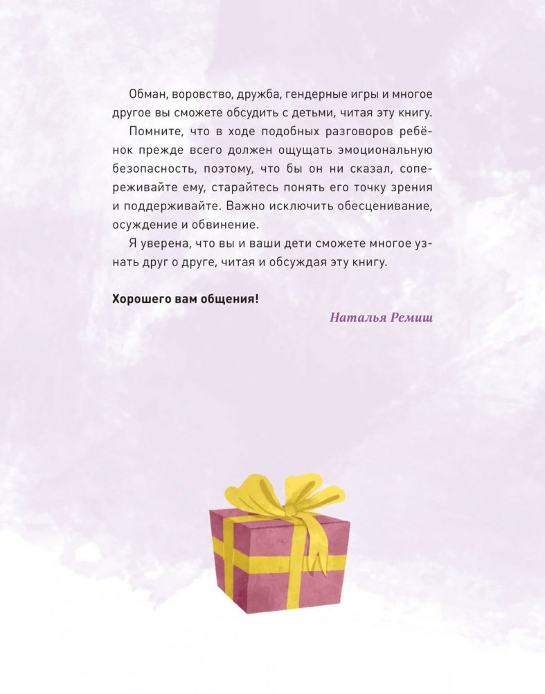Как говорить с ребенком о важном? Третья книга Натальи Ремиш вновь поднимает непростые вопросы. Нормально ли испытывать волнение в компании незнакомых людей? Что делать, если ребенок боится идти в новую школу? Нужно ли заставлять заниматься спортом? Чем приёмные родители отличаются от настоящих? Что такое гендерные стереотипы и нужно ли с ними бороться? Бывает ли дружба между мальчиком и девочкой?