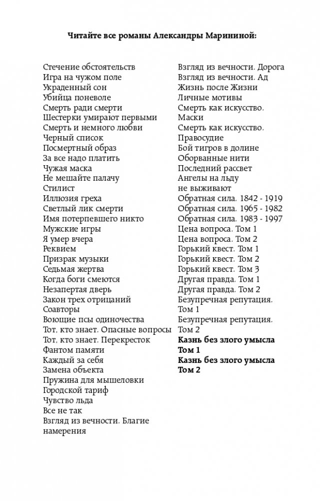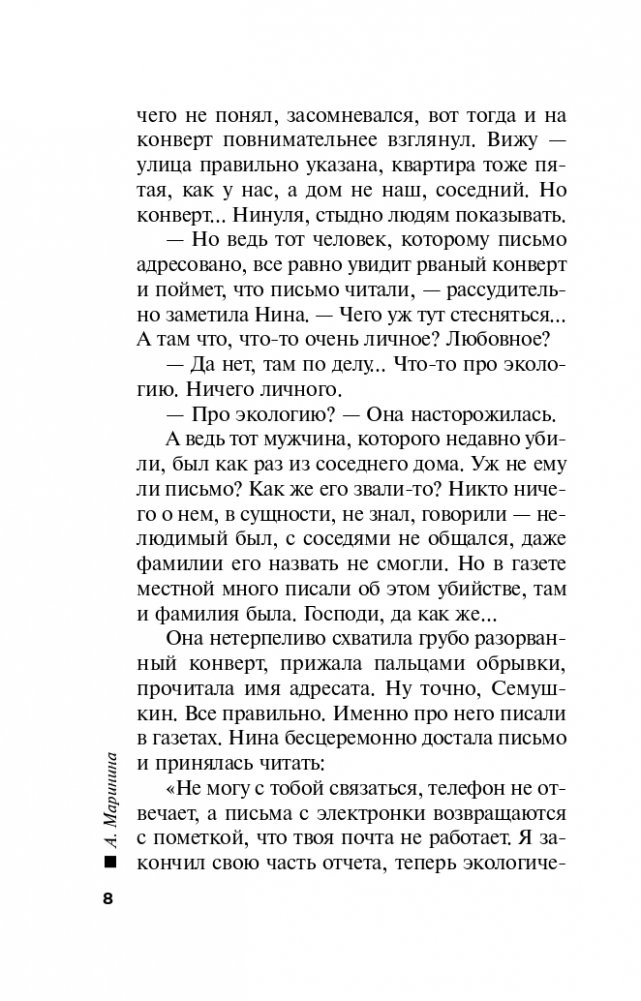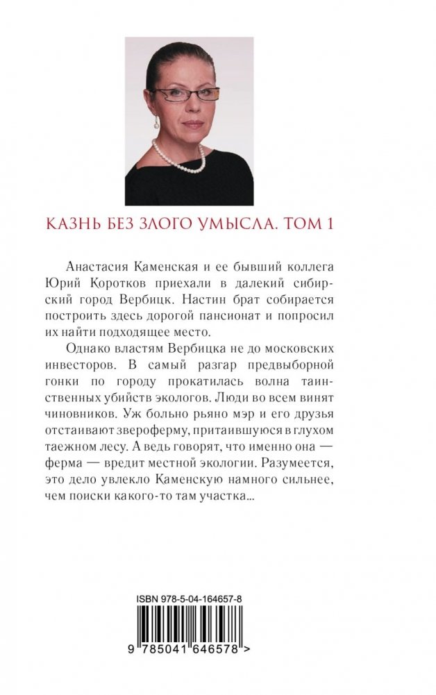 Однако, властям Вербицка не до московских инвесторов. В самый разгар предвыборной гонки по городу прокатилась волна таинственных убийств экологов. Люди во всем винят чиновников. Уж больно рьяно мэр и его друзья отстаивают звероферму, притаившуюся в глухом таежном лесу. А ведь говорят, что именно она — ферма — вредит местной экологии. Разумеется, это дело увлекло Каменскую намного сильнее, чем поиски какого-то там участка…
