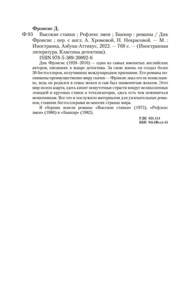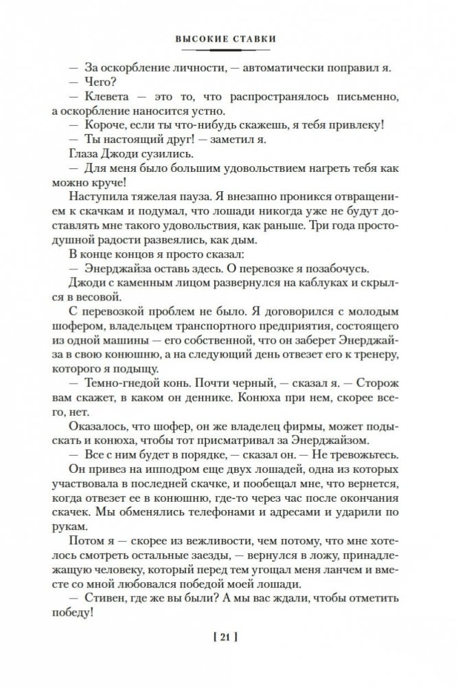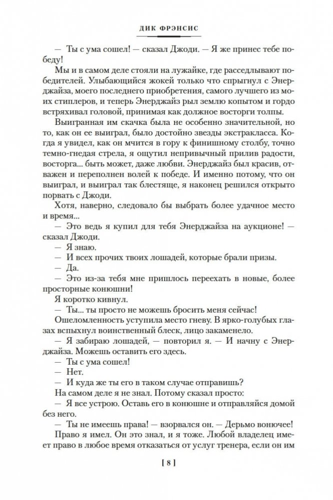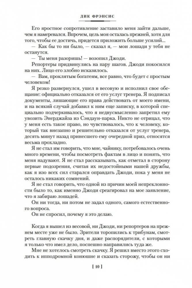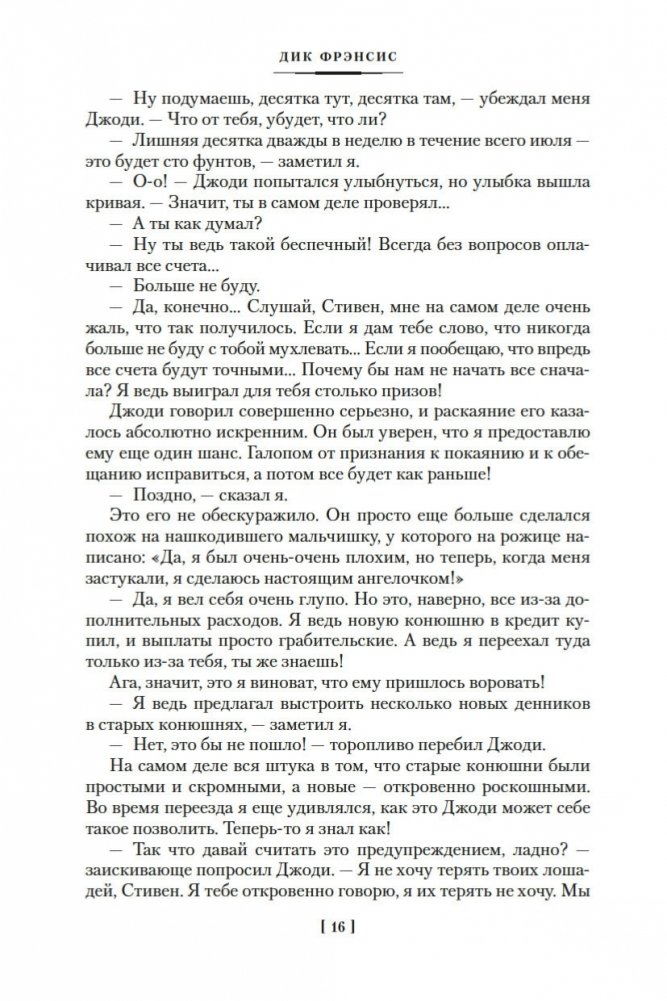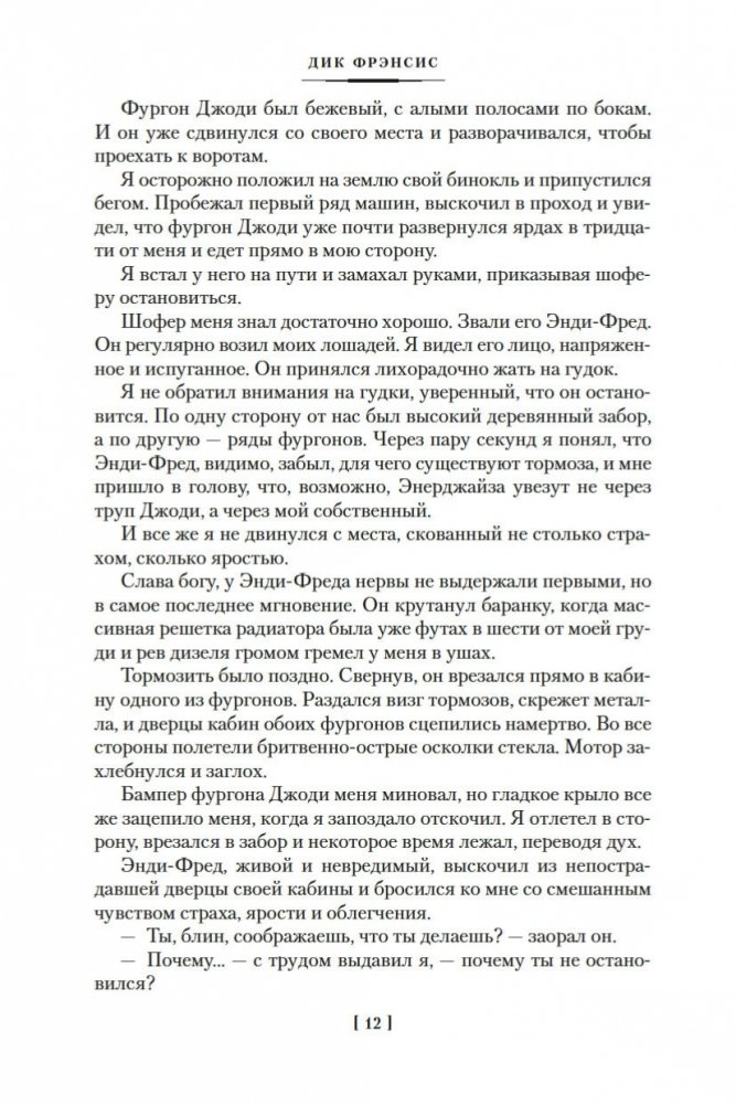 Дик Фрэнсис (1920–2010) — один из самых именитых английских авторов, писавших в жанре детектива. За свою жизнь он создал более 30 бестселлеров, получивших международное признание. Его романы посвящены преимущественно миру скачек — Фрэнсис знал его не понаслышке, ведь он родился в семье жокея и сам был знаменитым жокеем. Этот мир полон азарта, здесь кипят нешуточные страсти вокруг великолепных лошадей и крупных ставок в тотализаторах, здесь есть чем поживиться мошенникам. Все это и послужило материалом для увлекательных романов, ставших бестселлерами во многих странах мира.