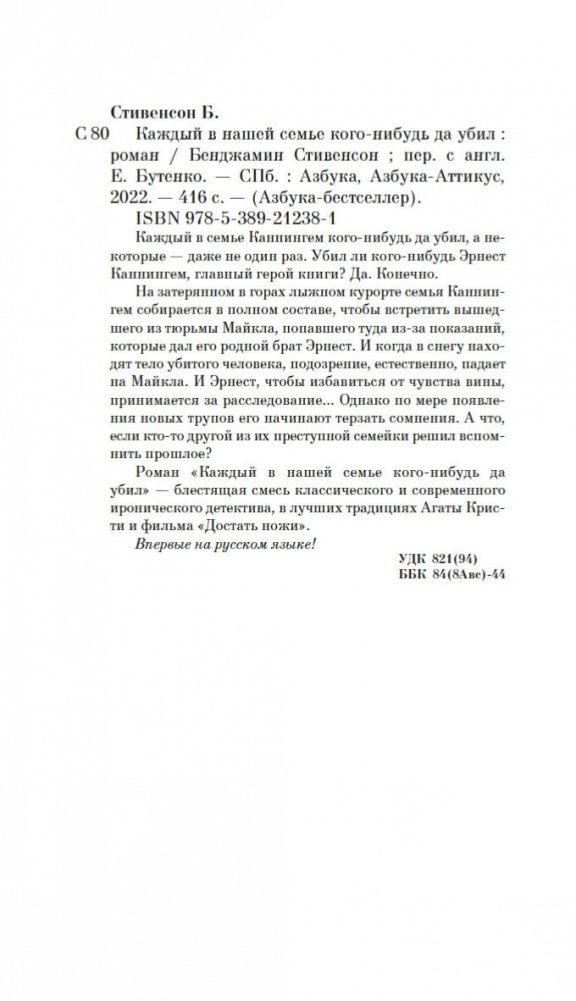 Роман «Каждый в нашей семье кого-нибудь да убил» — блестящая смесь классического и современного иронического детектива, в лучших традициях Агаты Кристи и фильма «Достать ножи».