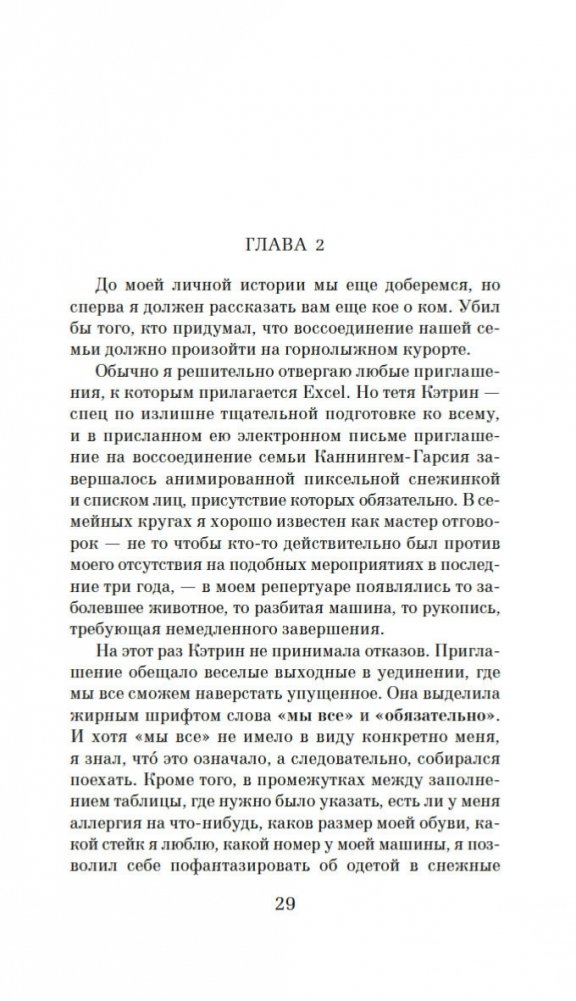 Каждый в семье Каннингем кого-нибудь да убил, а некоторые — даже не один раз. Убил ли кого-нибудь Эрнест Каннингем, главный герой книги? Да. Конечно. На затерянном в горах лыжном курорте семья Каннингем собирается в полном составе, чтобы встретить вышедшего из тюрьмы Майкла, попавшего туда из-за показаний, которые дал его родной брат Эрнест. И когда в снегу находят тело убитого человека, подозрение, естественно, падает на Майкла. И Эрнест, чтобы избавиться от чувства вины, принимается за расследование… Однако по мере появления новых трупов его начинают терзать сомнения. А что, если кто-то другой из их преступной семейки решил вспомнить прошлое?