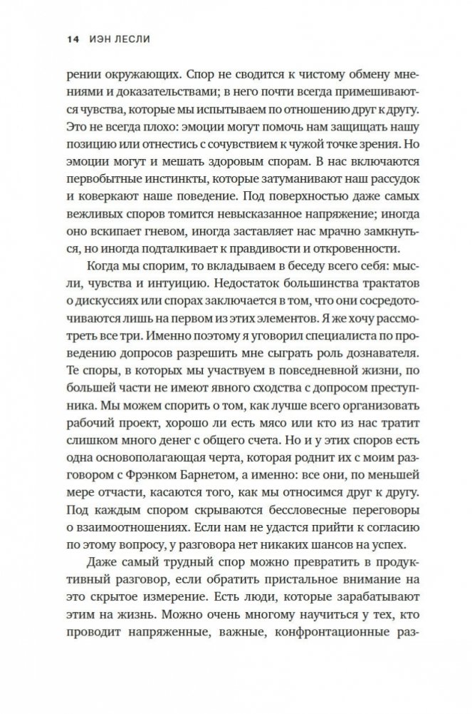 В чем секрет гармоничных отношений? Что стоит за некоторыми из величайших научных и творческих прорывов? Неожиданный ответ: конфликт. Продуктивное несогласие — это образ мышления, возможно, лучший из имеющихся. Оно развивает наш разум и творческий потенциал и даже может объединять. Оно жизненно необходимо для успеха любого совместного предприятия — от брака до коммерческой компании или демократического государства. В нашем все более склонном к конфликтам мире у нас остается единственный путь к сплочению и совместному прогрессу: учиться у тех, кто овладел искусством и наукой споров. Резюмируя опыт, полученный во взаимодействии с различными специалистами, автор этой книги предлагает набор эффективных инструментов, которые все мы можем использовать, чтобы наши диалоги были более конструктивными.