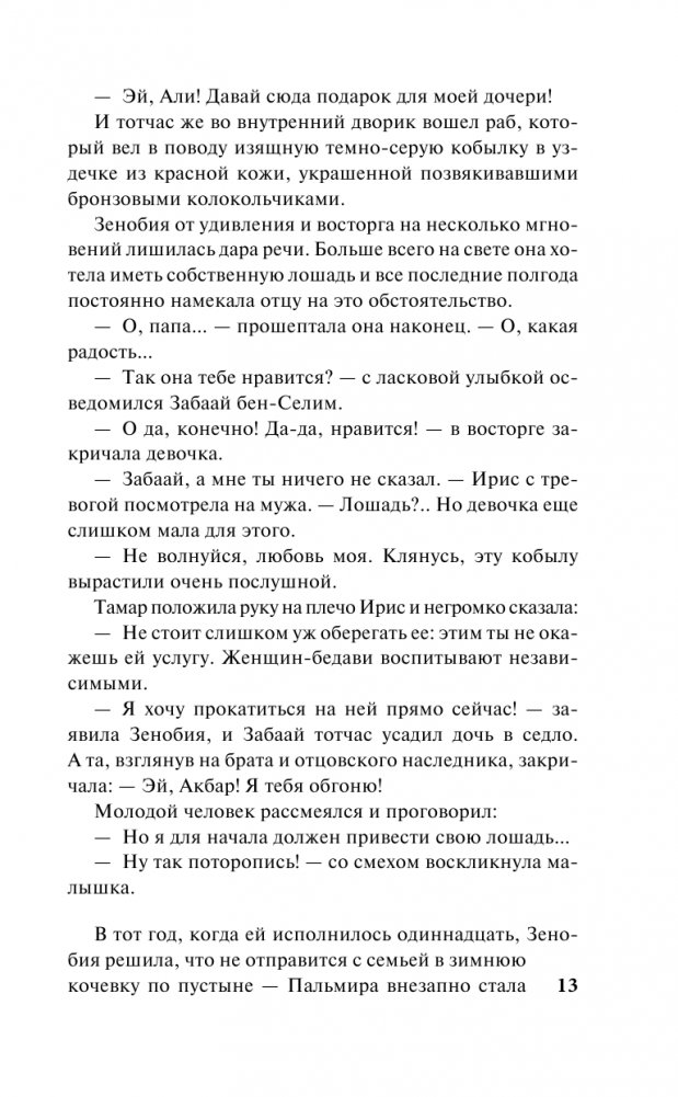 Имя этой прославленной воительницы овеяно легендами, утверждающими, будто она была прямым потомком самой Клеопатры, которой не уступала ни очарованием, ни умом, ни отвагой, ни политическими амбициями... амбициями, которые и втравили ее, повелительницу Пальмиры, в войну с противником, не знавшим поражений и не выбиравшим способов достижения победы, — всемогущим имперским Римом.