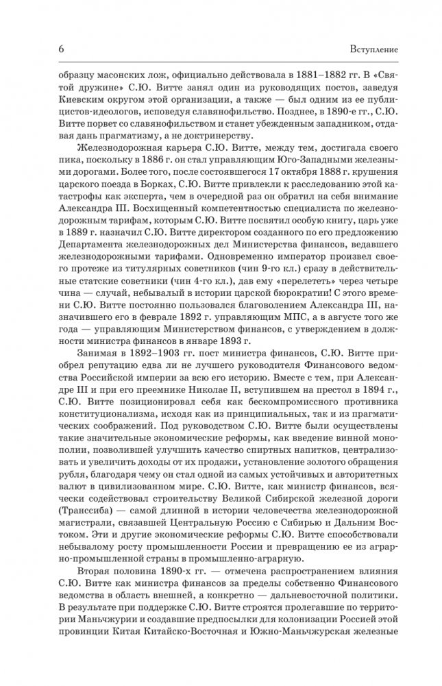 Граф Сергей Юльевич Витте (1849–1915) — один из самых выдающихся государственных деятелей Российской империи конца XIX – начала XX в. Он сделал блистательную бюрократическую карьеру и занимал посты министра путей сообщения (1892 г.) и министра финансов (1892–1893 гг.), председателя Комитета министров (1903–1906 гг.) и Совета министров (1905–1906 гг.). С.Ю. Витте стал первым в истории России главой объединенного правительства — премьер-министром. Под руководством С.Ю. Витте были осуществлены такие значительные экономические реформы, как введение винной монополии, установление золотого обращения рубля, благодаря чему рубль стал одной из самых устойчивых и авторитетных валют в цивилизованном мире. С.Ю. Витте, как министр финансов, всячески содействовал строительству Великой Сибирской железной дороги (Транссиба), связавшей Центральную России с Сибирью и Дальним Востоком. Эти и другие экономические реформы способствовали небывалому росту промышленности России.