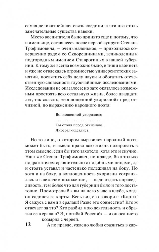 Настоящее в романе Достоевского тесно связано с прошлым: он видит истоки нигилистических настроений у детей в их отцах-идеалистах, совершенно не знающих России. Но уникальность "Бесов" еще и в том, что на примере этих персонажей Достоевский живописует всю Россию, одержимую бесами, — вчера, сегодня, завтра безумие преследует нас.