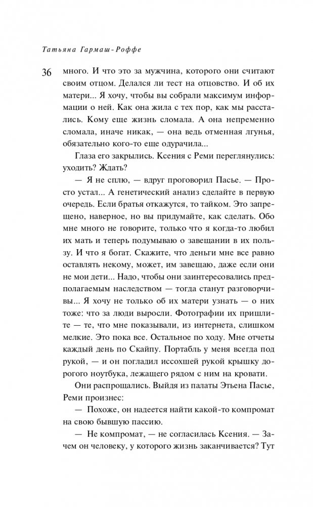 Татьяна Гармаш-Роффе знает, каким должен быть настоящий детектив, и следует в своих романах законам жанра. Театральный критик, она умеет выстраивать диалоги и драматургию чувств. Неординарная личность, она дарит часть своей харизмы персонажам.