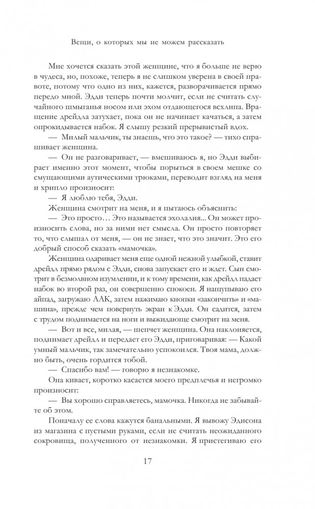Автор ловко сплетает воедино рассказ Алины, влюбленной молодой женщины, пытающейся наладить жизнь во время Второй мировой войны в Польше, и ее внучки Элис — вечно измотанной матери, изо всех сил пытающейся вырастить сына, страдающего аутизмом, и одаренную дочь.