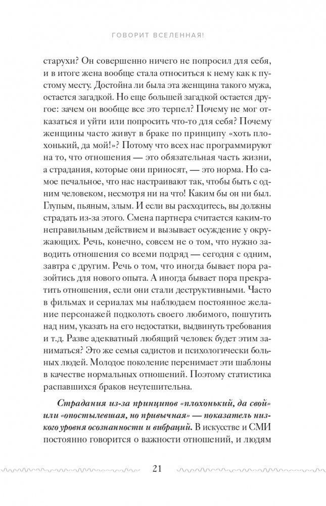 Труд по достижению счастья — это не лопатой целину поднимать. Это труд необычный, другой. Когда вы всё попробовали, а отношения не строятся, здоровье всё хуже и хуже, приличной работы не предвидится: самое время сменить частоту и услышать вселенную. Видеть, а не смотреть, Быть, а не присутствовать. Если знать, как работают высокие вибрации, — нерешаемых задач не останется. В условиях стресса и всеобщей неопределенности — авторская методика по улучшению качества собственной жизни приносит желанный успех.