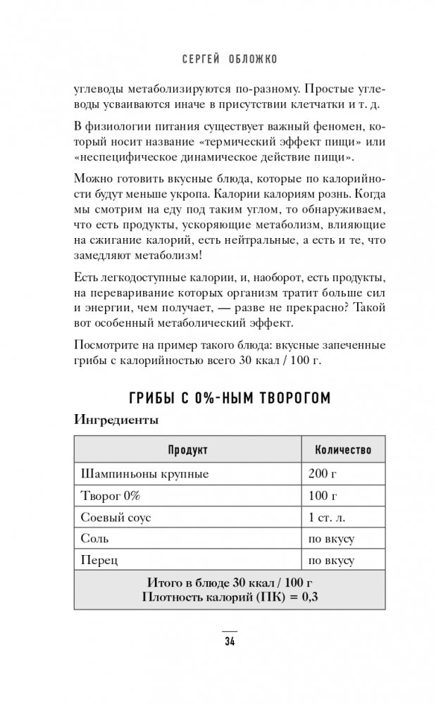 Книга рецептов от Сергея Обложко, врача-психотерапевта, диетолога, специалиста по снижению веса, автора книги «Мозг против похудения».