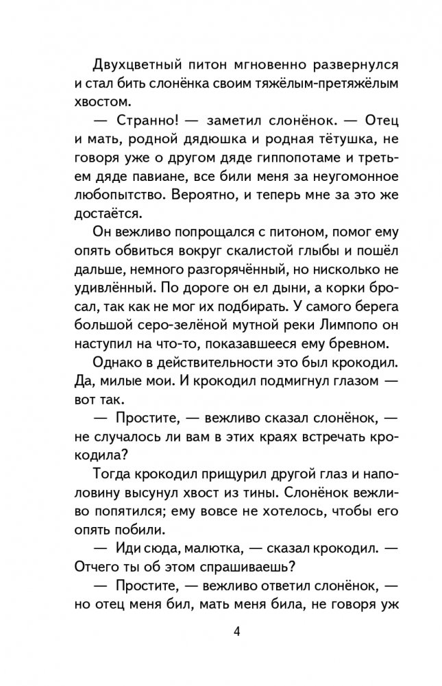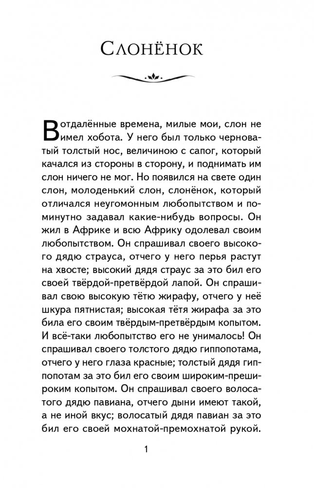 Почему у слона на голове хобот? Откуда у верблюда горб? Как появились первые кенгуру и броненосцы? Зачем животные покрыты пятнами? На самые неожиданные вопросы детей ответят всемирно известные сказки Редьярда Киплинга, вошедшие в этот сборник. А ещё дети узнают героическую историю мангуста Рикки-Тикки-Тави, который защищал своих хозяев от коварных ядовитых змей. Захватывающие истории помогут маленьким читателям отправиться в фантастическое путешествие и подружиться с самыми интересными обитателями жарких стран.