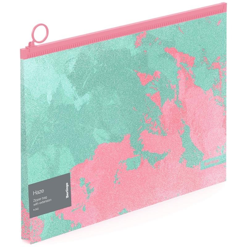 Папка-конверт на молнии с расширением Berlingo "Haze", 180 мкм, мятная/розовая, с рисунком, с эффектом блесток