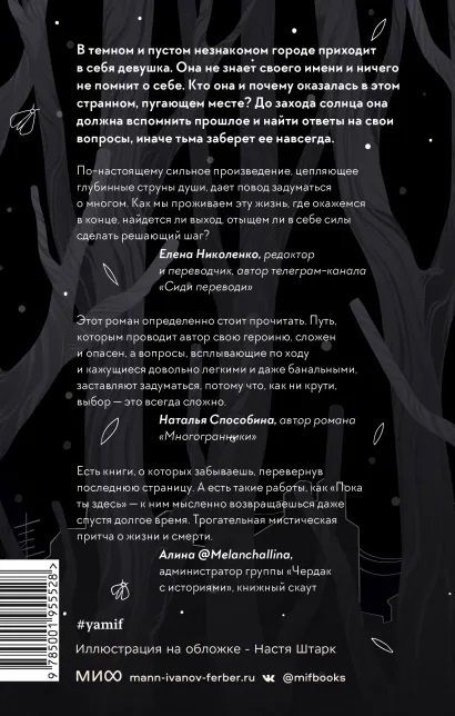В темном и пустом незнакомом городе приходит в себя девушка. Она не знает своего имени и ничего не помнит о себе. Кто она и почему оказалась в этом странном, пугающем месте? До захода солнца она должна вспомнить прошлое и найти ответы на свои вопросы, иначе тьма заберет ее навсегда.
