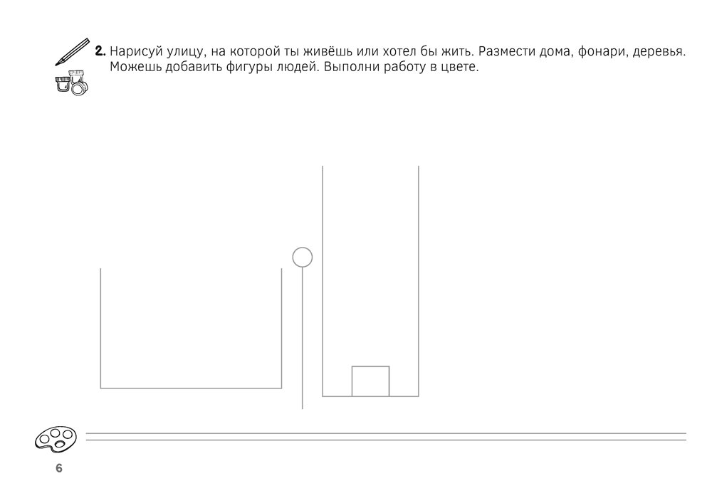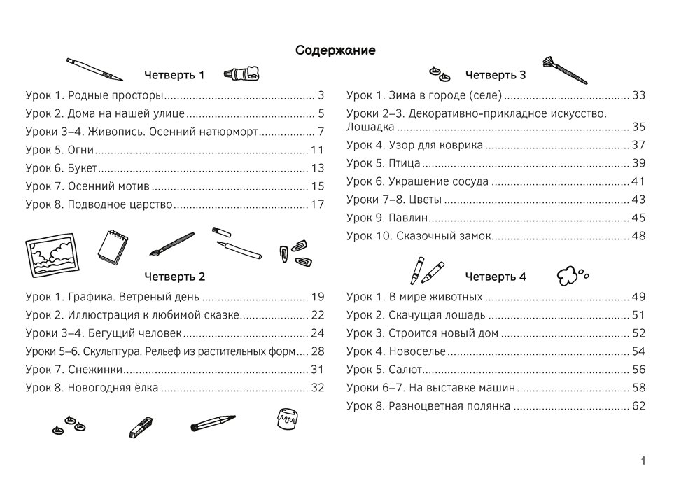 Альбом заданий содержит материалы для каждого урока, предусмотренного учебной программой. Пособие позволит учащемуся составлять необычные композиции, работать гуашью, акварелью, вырезать, наклеивать и лепить.